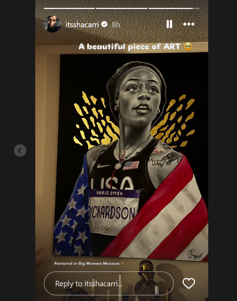 In a recent post, Richardson unveiled a portrait of herself from the historic Games, showcasing her triumphs while draped in the American flag.