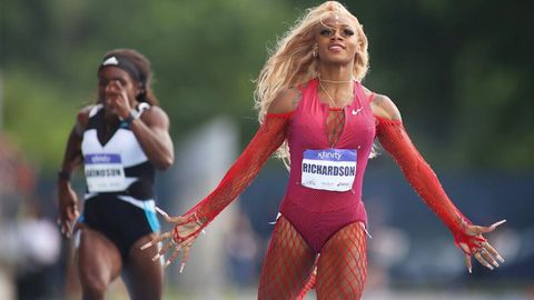 Receiving the baton from Thomas while Team USA were trailing, Richardson mounted a comeback to anchor the team to victory.
