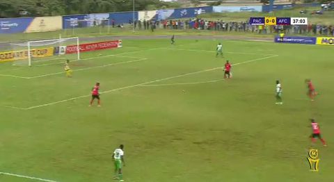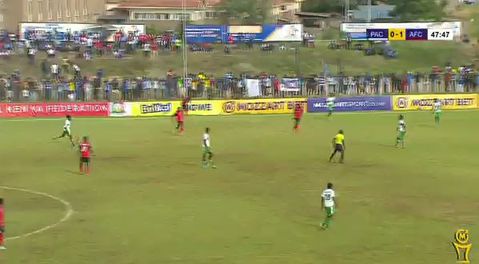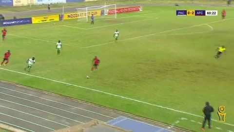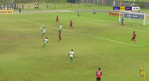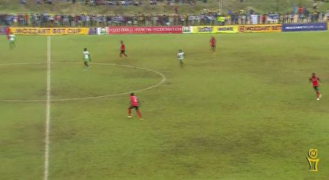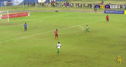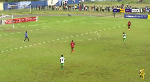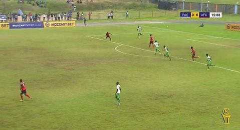 He receives the ball and then gives a line-breaking pass to Cliff Nyakeya.