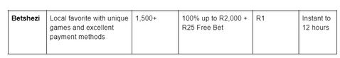Betshezi: Local favorite with unique games and South African-friendly payment methods.