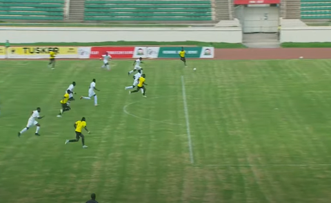 Oduor then beats the defender, before hitting an early floated cross towards Otieno, who heads into the back of the net.