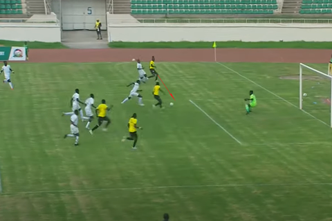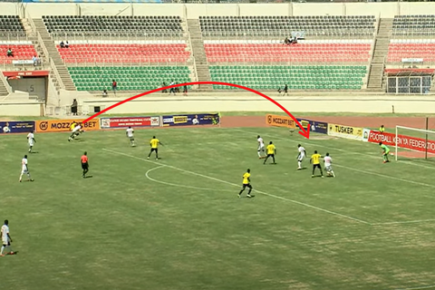Odhiambo finds himself with enough space to drill a cross as shown in the screenshot below.