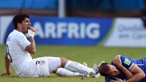 At the 2014 World Cup in Brazil, Suarez bit his way out of the tournament when he sunk his teeth in Italy’s Giorgio Chiellini, who pulled his shirt over the reveal bite marks, and the Uruguay forward was handed a four-month ban from football.