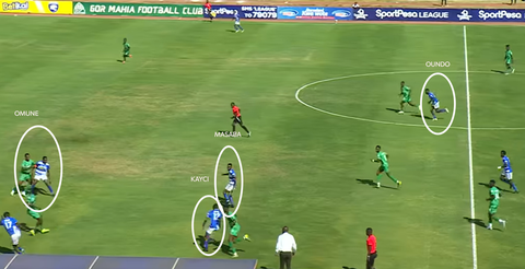 In midfield, Boniface Kweyu and Musa Oundo held the double pivot, while Tyson Otieno played in the attacking midfield role. James Kinyanjui and Julius Masaba operated on the flanks, supporting Victor Omune, who was nominally the lone striker.