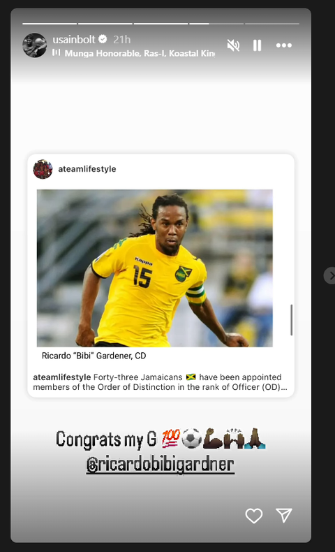 Usain Bolt's demonstration of support for Gardner's recognition isn't an Instagram post—it's a nod by one Jamaican legend for another.
