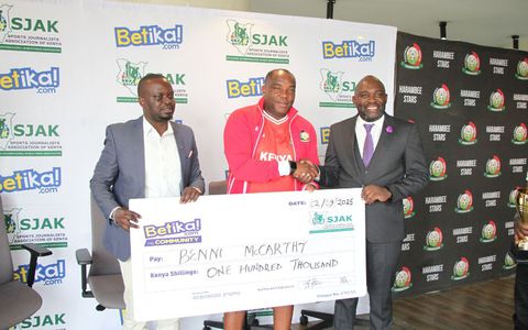 Harambee Stars head coach Benni McCarthy has been crowned the Betika/SJAK Coach of the Month for August, becoming only the third foreign coach to lift the coveted award.