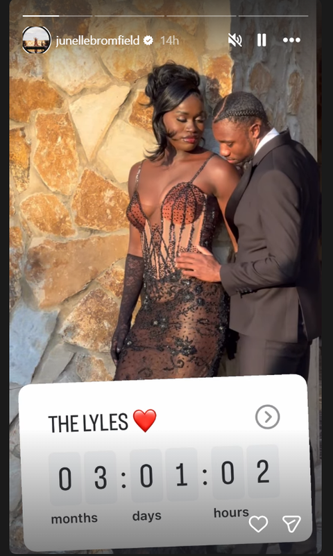 Through her Instagram story on Saturday, Bromfield wrote: “THE LYLES 03:01:02,” with the words month, days and hours below each of the digits, suggesting when the wedding will be held.