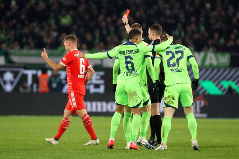 Thomas Muller turned it into three with a beautifully headed goal, and Bayern looked like they were coasting to victory. The first curve ball was thrown in the easy game Bayern had up until this point when first-half substitute Jakub Kaminski got on the end of a delivery from Paulo Otavio to register Wolfsburg on the scoresheet. Bayern were then hampered when Kimmich pulled his opponent back from reaching the ball, prompting him to be sent for an early shower.