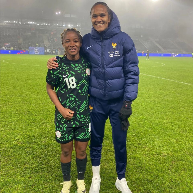 Nigerian footballer Princess Adoo Yina has taken to social media to share an inspiring story about her emotional encounter with Sakina Karchaoui, the captain of France's women's national team, during the friendly match between Nigeria's Super Falcons and Les Bleues.