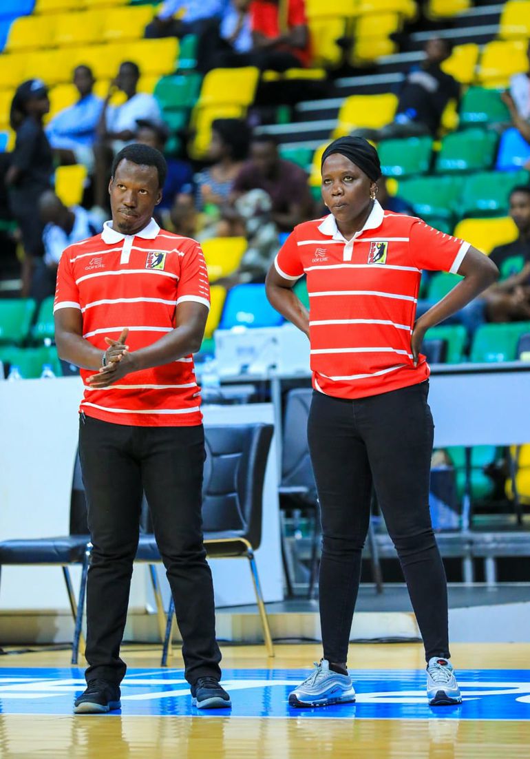 Assistant coaches, Nick Natuhereza and Ali Mavita over see action during the Gazelles match against the Democratic Republic of Congo| Gazelles photo