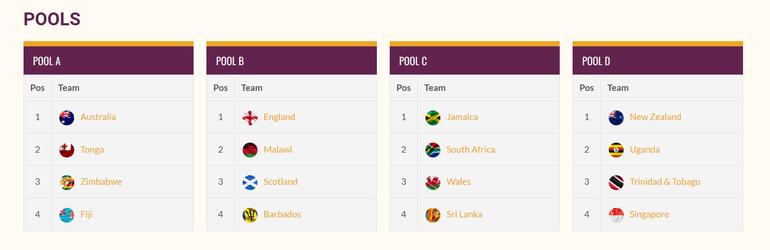 The bottom four finishers from Group A-D will compete against one another in Group E.