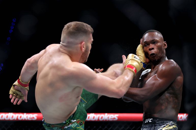 While a worn-out Du Plessis continued to land strikes here and there but stopped wrestling, Adesanya rallied in the third round with more bodywork.
