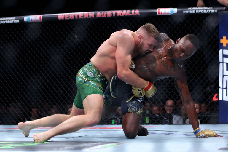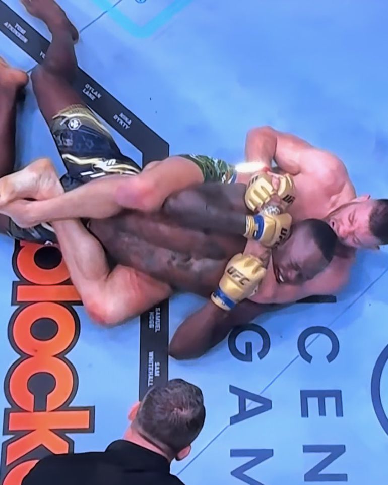 Du Plessis brought his game to the party and kept controlling the wrestling match, even though Adesanya was able to stand up at the start of the second round.