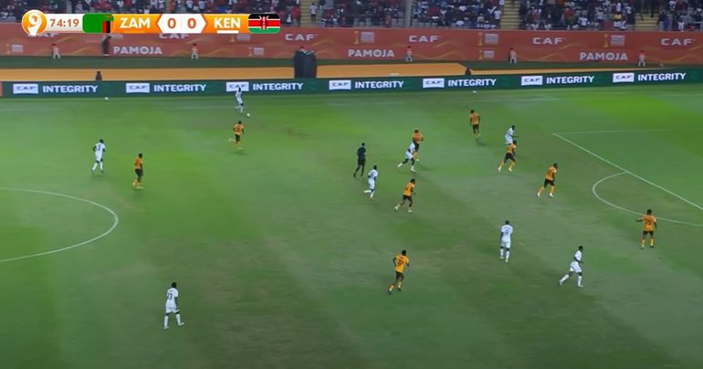This movement effectively shifted Kenya to build up with a back three allowing the right back to tuck infield and then allow one number 10 to join the attack.