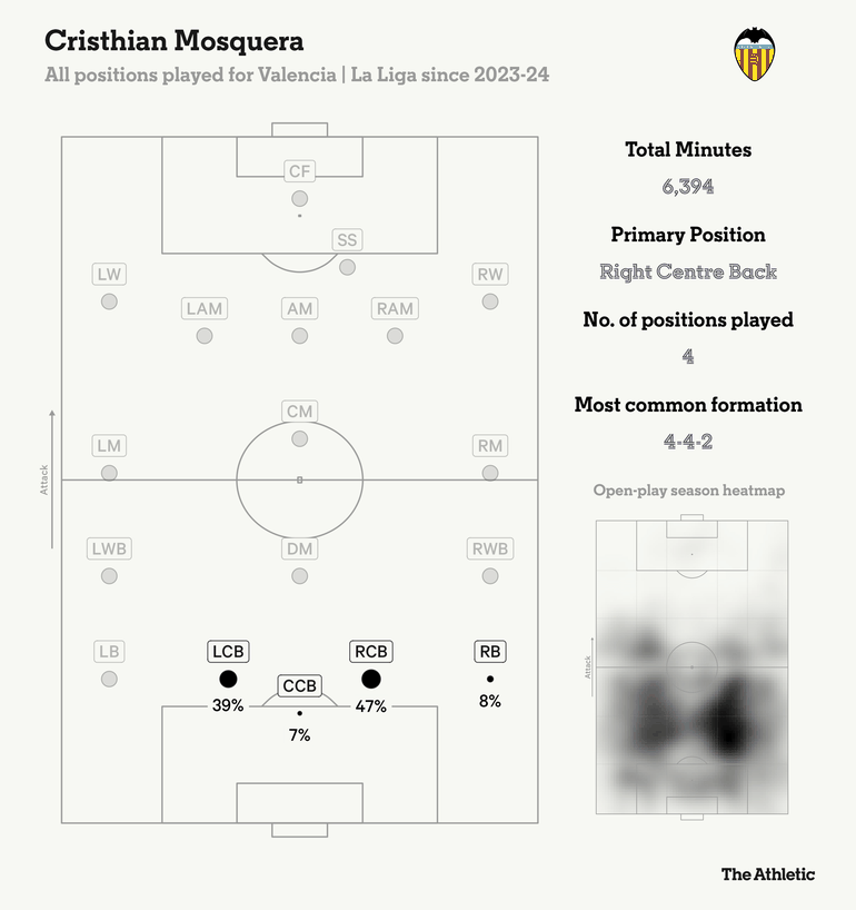 Mosquera played 90 minutes in 37 of Valencia’s 38 La Liga games last season — an ironman feat for a 20-year-old. His consistency and durability are exactly what Arteta needs to ensure defensive continuity through a long season.