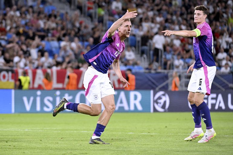 Germany refused to roll over. Nelson Weiper’s powerful header in first-half stoppage time halved the deficit, and Paul Nebel’s stunning curling effort in the 60th minute leveled the scores.