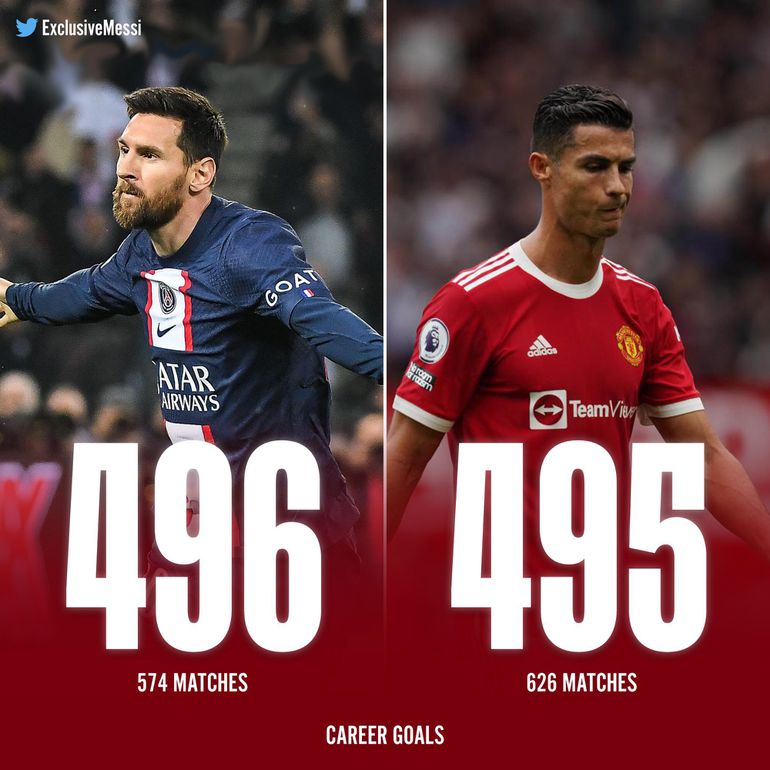 Lionel Messi's goal in PSG's title-winning match took him to 496 goals, surpassing Ronaldo's record.