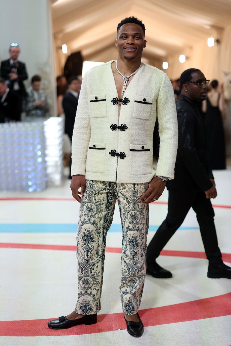 He is no stranger to the Met since it was his third time gracing the event. He looked sharp in a tweed jacket, a nod to a Chanel staple that featured flowery clasps. The outfit, designed by Bode, was paired with patterned pants. He completed it with a pearl necklace.