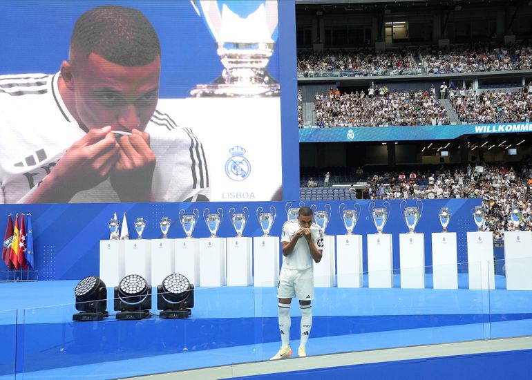Kylian Mbappe's Real Madrid official unveiling through the lenses.