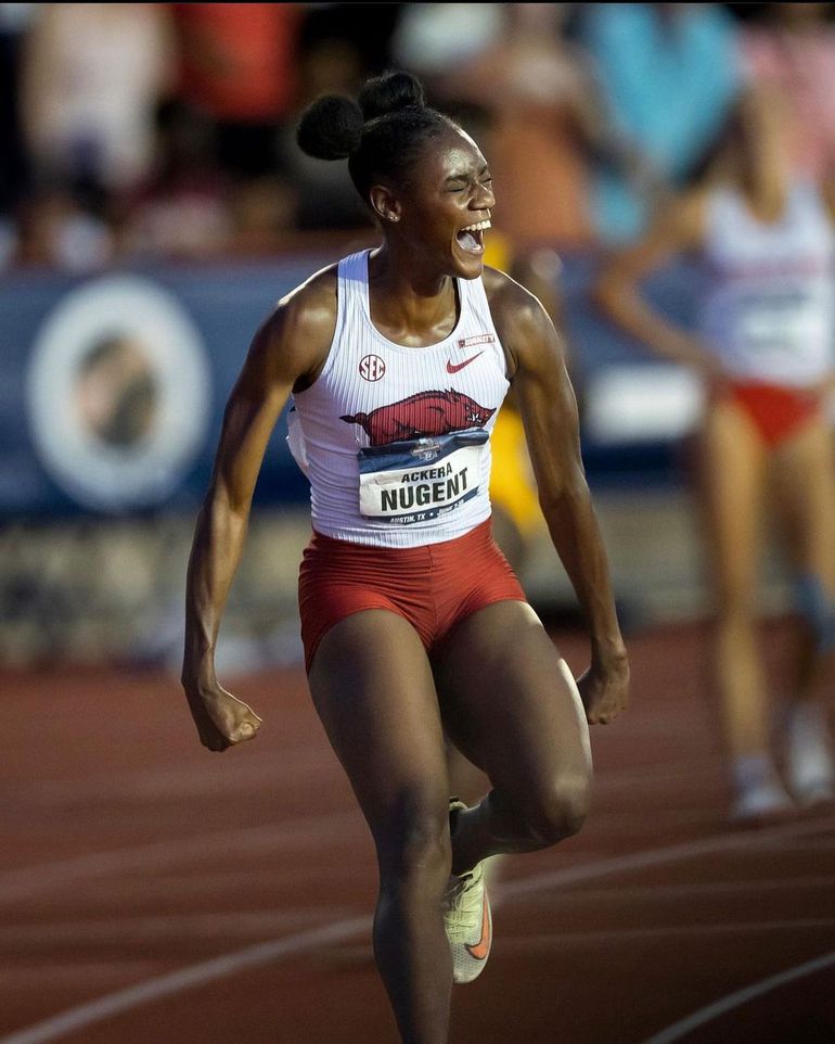 Ackera Nugent found success while competing for the University of Arkansas Razorbacks. However, she began her collegiate career at Baylor University, where she transferred in 2023.