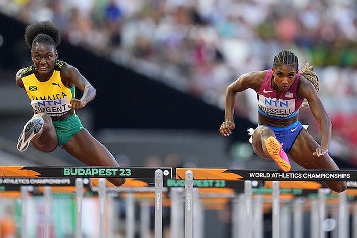 Ackera Nugent and Masai Russel at the 2023 World Championships in Budapest