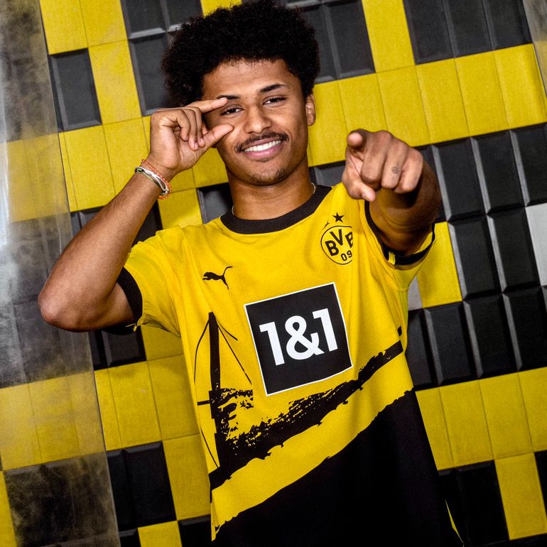 The new Borussia Dortmund home kit was modeled by first-team players such as German attacker of Nigerian descent Karim Adeyemi.
