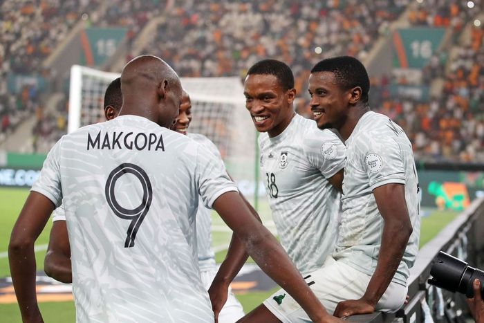 South Africa's players celebrate a goal|BAFANA BAFANA X