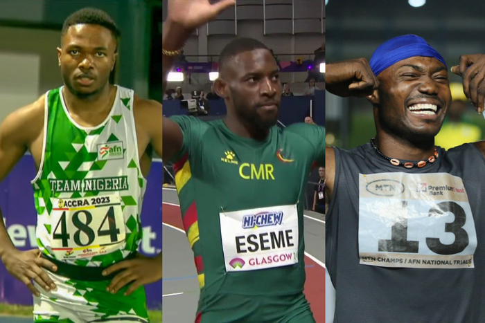 The Nigerian duo clocked the second and third-fastest overall times to qualify for the final, led by top favourite and world indoor finalist Eseme in 10.23s.