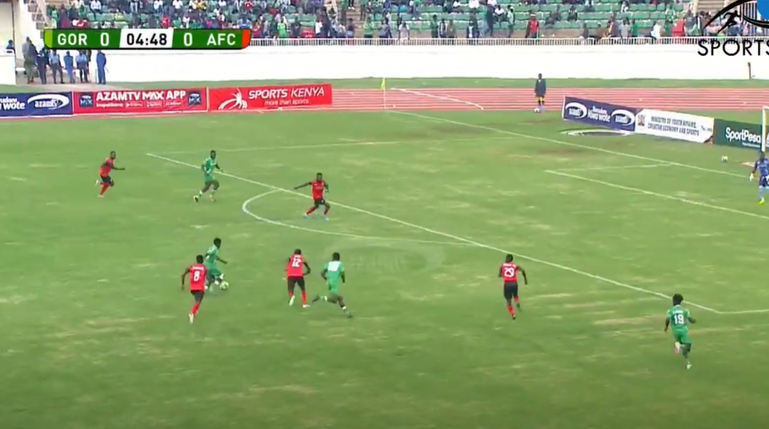 This is what led to the goal in itself. Leopards tried building from the back, but there were no options to pass to, and Opiyo dithered too much when trying to pass the ball to Kennedy Owino.