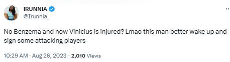 "Vinicius injury will not force us to sign players,” Ancelotti said per a post from Fabrizio Romano.