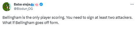 For the fans, Bellingham is the only player hitting the back of the net at the moment and they can sense danger if the club does not add more firepower.