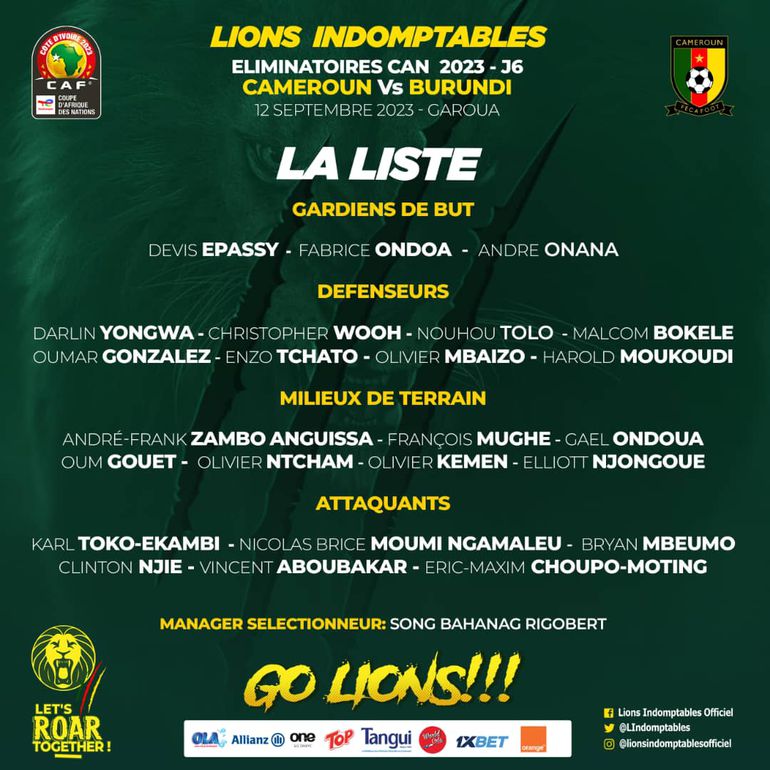 Indomitable Lions head coach Rigobert Bahanag Song included the Manchester United goalkeeper in his 25-man squad ahead of their AFCON 2023 qualifier against Burundi.