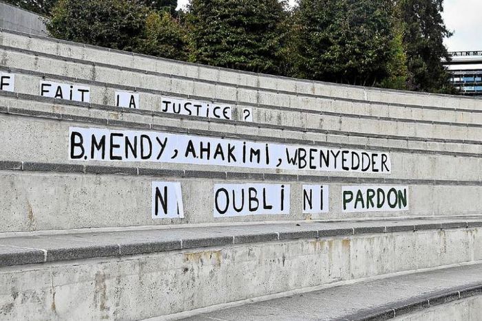 “What is the justice system doing? B. Mendy, A. Hakimi, W. Ben Yedder. No forgetting. No forgiveness," the banner read.