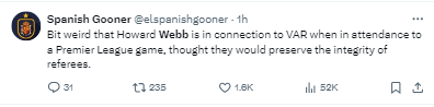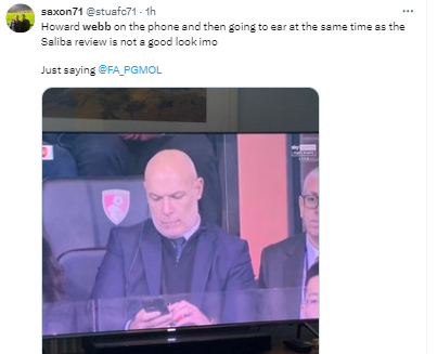 Supporters of Arsenal questioned if PGMOL boss Webb was involved in Saliba's dismissal from the game.
