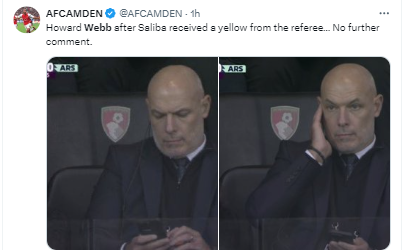 Arsenal fans blame Howard Webb for Saliba red card - Reactions as Gunners lose 2-0 to Bournemouth