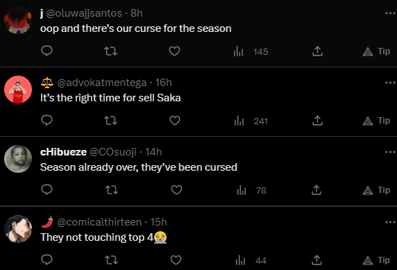 Others have either given up on Arsenal season or Saka’s career as the case may be, while others begged for the former Actress to steer clear of the England international.