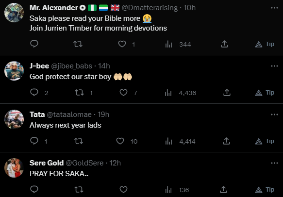 Some fans of the Gunners begged for divine intervention in the Kardashian-Saka bonding, saying only God could save the prodigious winger from the bad luck they had associated with the socialite family.