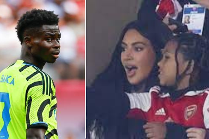 She recently posted an Instagram story with two pairs of Arsenal jerseys, half of which bore her surname, while the other half bore the name of Arsenal star Bukayo Saka, leading to a number of Arsenal fans begging Kim to leave their star boy alone.