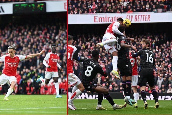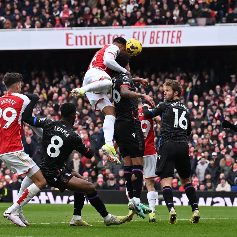 Declan Rice delivered a corner of pinpoint accuracy towards Gabriel, who outmuscled Chris Richards and powered a header past Dean Henderson for his second goal of the season