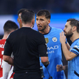 Leandro Trossard was sent off for kicking the ball away in the final moments of the first half after collecting a second yellow card.