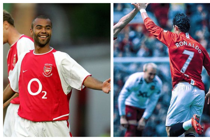Ashley Cole and Cristiano Ronaldo in Arsenal and Manchester United jerseys respectively