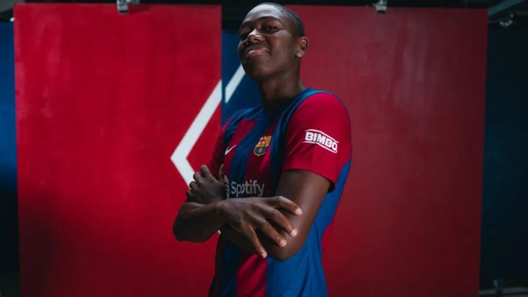 Asisat Oshoala models new Barcelona home kit for 2023/24 season