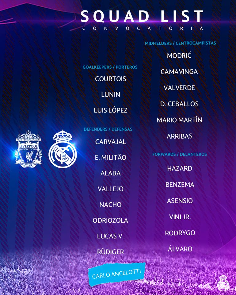 The rest of Real Madrid’s squad for Liverpool