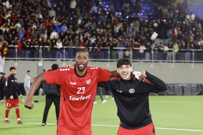 Masud Juma (left) has been in top form for Nejmeh SC in Labanon. Image: Nejmeh SC