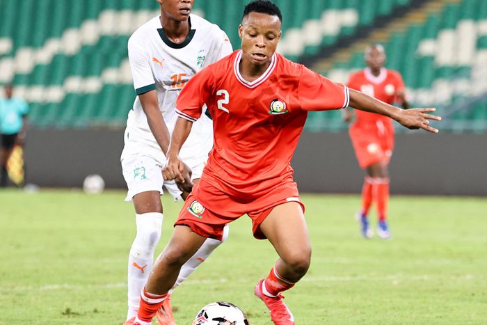 Mwanalima Adam of Harambee Starlets in action against Ivory Coast. Image: FKF Media
