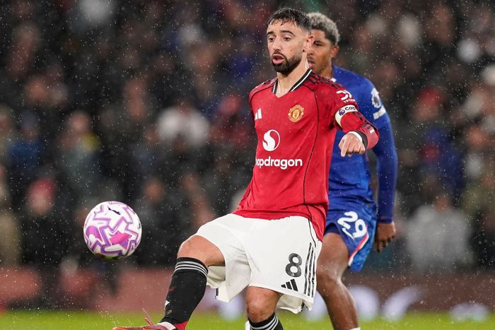 Bruno Fernandes of Man United shields the ball from Wesley Fofana of Chelsea during a Premier League clash. Image: Imago