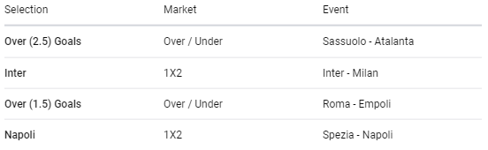 We have made available an accumulator of 5-odds from the Serie A and hope for a green weekend.
