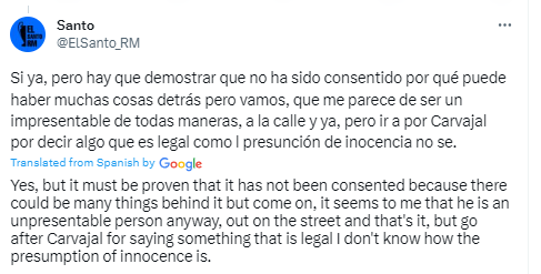 The translation read, "Carvajal asked me to tell a girl that he wanted to put his cock down her throat."