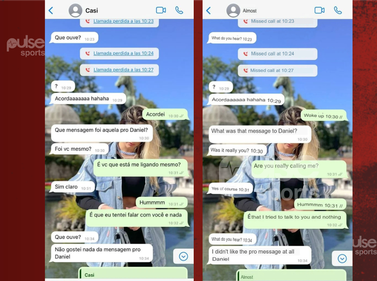 (L-R) Leaked chats between Casemiro and Sinttya Ramos translated from Spanish/via LeoDias.com
