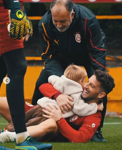 Victor Osimhen’s Galatasaray teammate Dries Mertens recently shared a heartwarming moment on the pitch with his son, teaching him the iconic knee slide celebration that has become synonymous with the former Napoli forward.